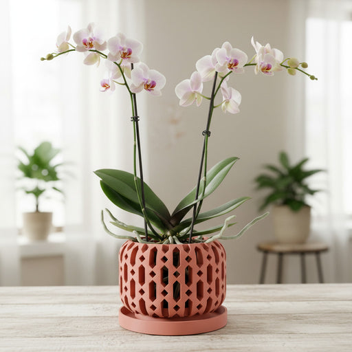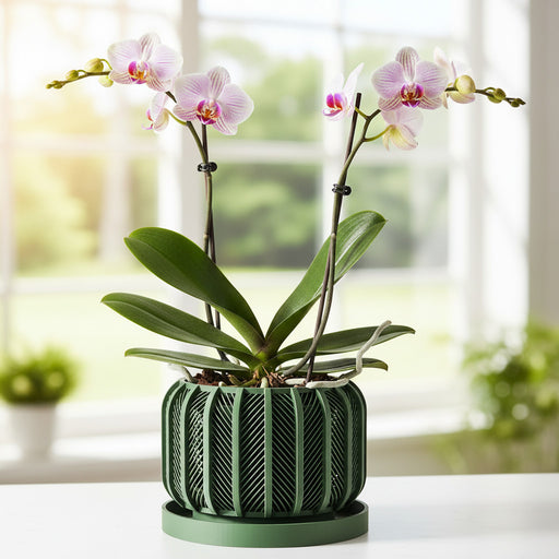 View full detailsVented 3D Printed Orchid Pot "Garni"with Drainage Saucer • Ultimate Root Health Solution
