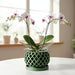 This pot for orchid is distinguished by a wide, slightly flattened silhouette with a seamless matte texture and a characteristic diamond-shaped pattern covering the entire shape. The intertwined mesh forms wide, uniformly located holes that provide maximum air circulation, which is ideal for the healthy development of the orchid roots. The surface of the pot smoothly passes into a structured pattern, which passes from a more open grid in the center to slightly compressed diamonds to the upper and lower edges. This thoughtful geometry improves both vent and visual design rhythm, combining organic softness with sculptural accuracy.
