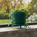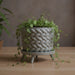 The cylindrical body is wrapped in a continuous braided texture that adds depth, rhythm, and sculptural character. The raised base subtly separates the planter from the surface, enhancing its proportions while preserving a compact, grounded silhouette. The legs are seamlessly integrated into the form, making the planter appear cohesive rather than modular.