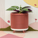 “Quadra” is a vertical-ribbed, cylindrical 3D-printed planter with legs. A compact four-leg pedestal lifts the pot for airflow and a clean mid-century silhouette. Choose Drainage Hole for classic planting, or No Hole to use it as a cachepot with your nursery pot inside. Lightweight yet rigid, metal-free, and modern.