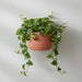 The vertical surface texture keeps the form visually grounded, while the smooth inner insert creates a clean, intentional break in the geometry. Together, these elements make "Arco" feel structured but soft, minimal but expressive. With trailing plants, the planter creates a natural flow downward, emphasizing the suspended effect and the interaction between geometry and organic growth.